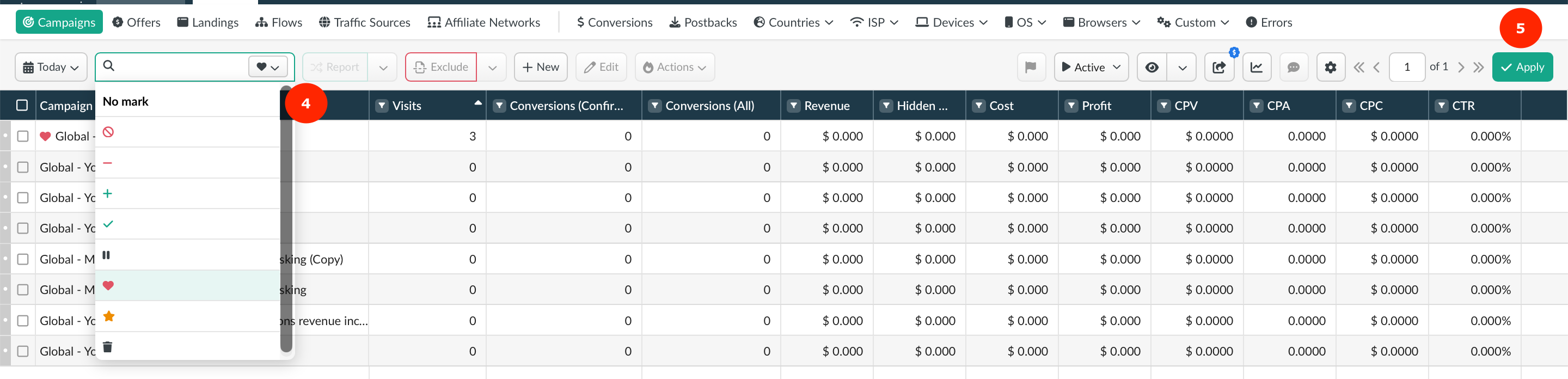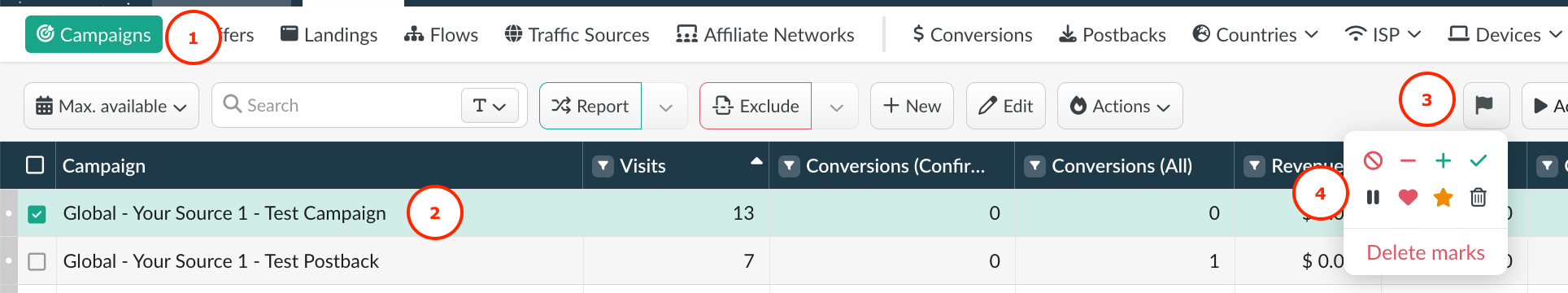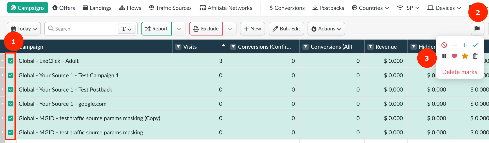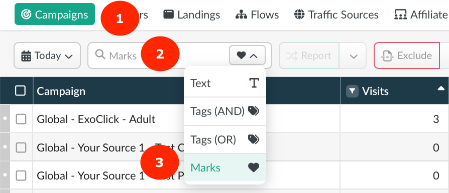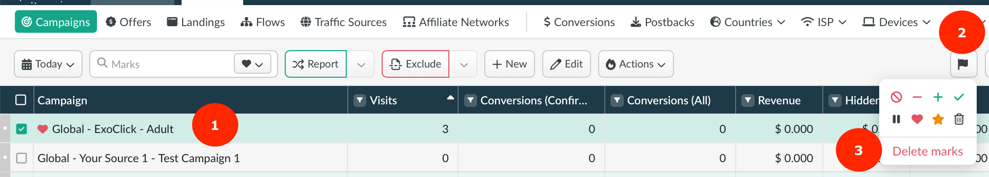 Mark converted data lines, profitable campaigns or their elements using the following marks: ➕✔️❤️⭐