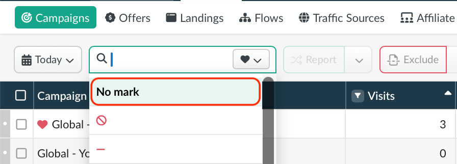 Non-converted data lines, unprofitable campaigns or their elements can be marked with: 🚫➖⏸️🗑️